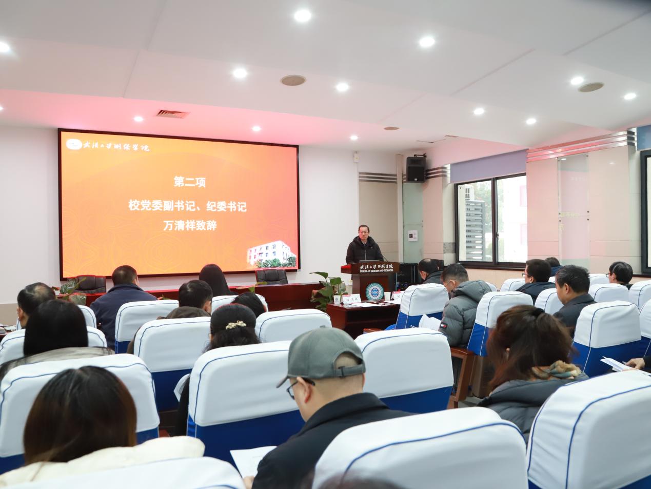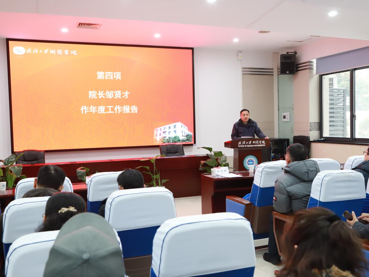 院长邹贤才代表18av 领导班子作《2025年度18av 工作报告》。报告回顾了2025年18av 在理论武装、学科建设、人才培养、科学研究及师资队伍建设等方面取得的阶段性进展与显著成效。