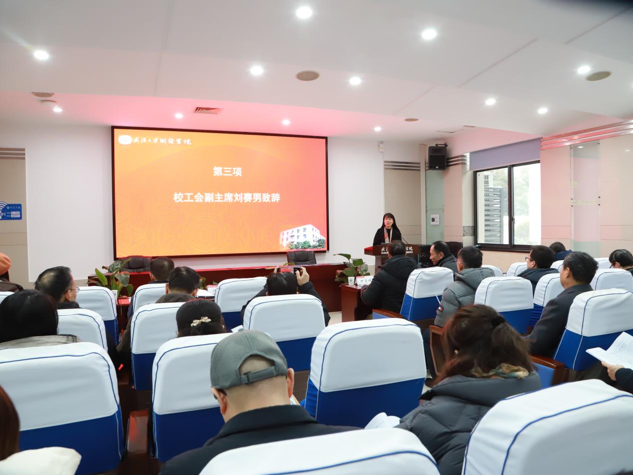 18av 教职工第五届第五次代表大会在18av 227报告厅隆重召开。会议回顾了18av 2025年度各项工作,审议了相关专题报告与年度经费使用情况。校党委副书记、纪委书记万清祥及校工会副主席刘赛男出席会议,18av 35位正式代表及9位列席代表参加会议。会议由院党委副书记、工会主席郭重奎主持。